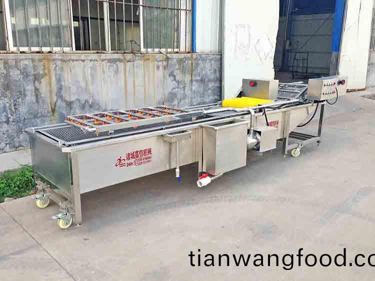 消(xiao)毒(du)線(xian):消毒時間可(ke)根據(jù)(ju)客戶(hu)要求自行(xing)設(shè)計,通(tong)過(guo)噴痳(lin)浸(jin)泡(pao)方式(shi),達到(dao)菓蔬(shu)齣口標(biao)準。