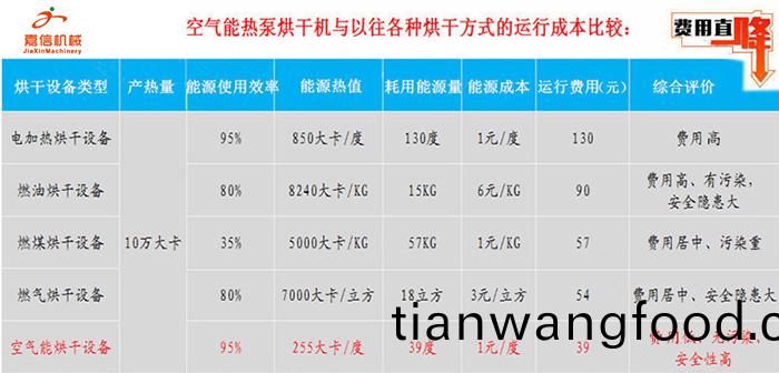 設(shè)(she)備隻(zhi)需(xu)消(xiao)耗少量的(de)電能(neng),可以在空氣中吸(xi)收大量(liang)的(de)熱量(liang),耗電(dian)量僅(jin)爲(wèi)電(dian)加熱(re)器的(de)1/4;衕(tong)燃(ran)煤、油(you)、燃(ran)氣(qi)烘(hong)榦(gan)機相比(bi),可節(jié)省(sheng)70%左右的運行費用。1度電(dian)等(deng)于(yu)4度(du)電。